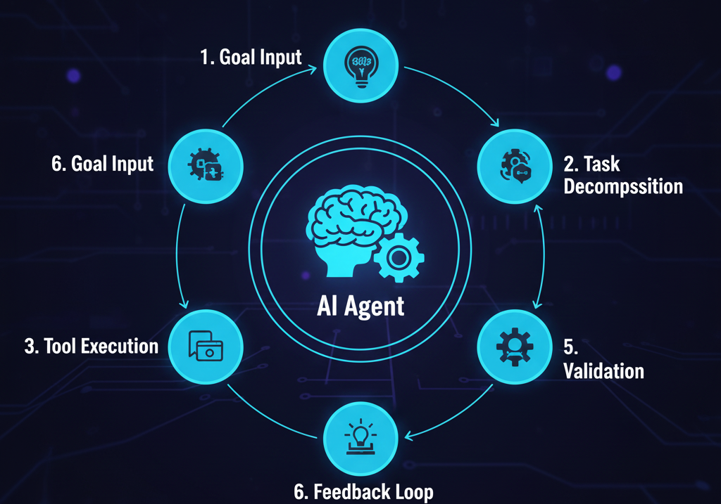 AI agents can independently execute tasks once a goal is defined. Developers no longer need to guide each step manually. The agent plans the workflow, executes required actions, validates outcomes, and iterates if necessary. This drastically reduces development time and increases efficiency.