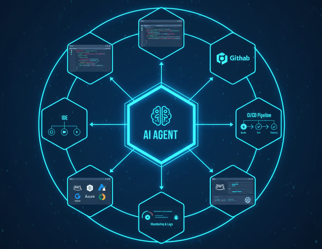 AI agents integrate directly with development tools and environments. They can write and modify files in IDEs, commit changes to repositories, trigger CI/CD pipelines, deploy services to the cloud, and monitor system performance. This deep integration allows agents to perform real development work instead of merely suggesting solutions.