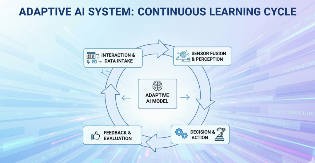 Adaptive AI systems can personalize responses, improve accuracy through feedback loops, and evolve their behavior without full retraining. This marks a fundamental shift in AI design, where intelligence becomes dynamic rather than fixed. These systems are more suitable for real-world environments that require ongoing decision-making and long-term planning.